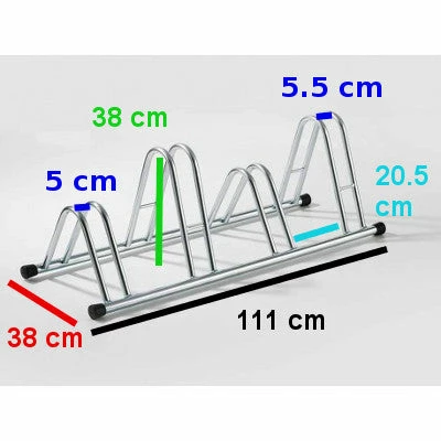 Pesant environ 6 kilos, ce parking vélo mesure 111 cm de long, 38 de large, 38 de haut. Il est livré avec des bouchons pour beaucoup plus de stabilité et afin d’éviter que le râtelier ne détériore le sol.