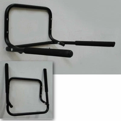 Le dispositif se fixe sur un mur avc un kit de fixation fourni. Le système est pliable pour limiter l’encombrement. Le porte-vélo mural 2 places pour vélos classiques plus légers est également disponible.