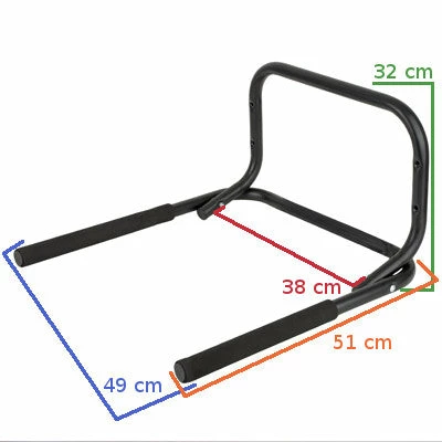Ce range-vélo supporte une charge maximale de 80 Kg, idéal donc pour supporter deux VAE ou des vélos lourds. L’installation du vélo se fait par le cadre sur 2 encoches de maintien. Pour les vélos pour femme qui ne sont pas pourvus de tube supérieur droit, il est possible d’adapter avec une tige en acier. La mousse assure une protection du cadre contre les rayures.
