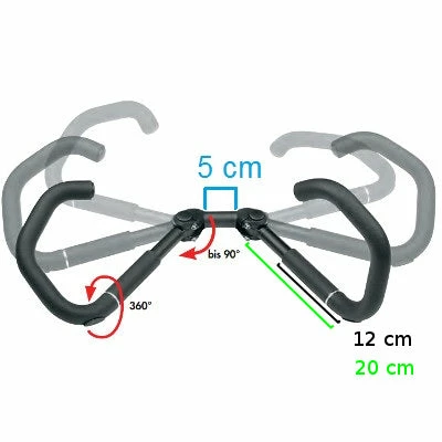 Réglable, le guidon de vélo AHS Premium offre un ajustement optimal de votre assise et une bonne prise en main. L’angle des poignées se règle de 0 à 90 degrés et l’ajustement des cornes à 360°. Il diminue fortement les douleurs aux poignets et le mal de dos. Les extrémités du guidon sont, elles aussi, amovibles. Une fois le guidon replié complètement, le rangement et le transport du vélo sont simplifiés. Une notice d’installation est disponible.