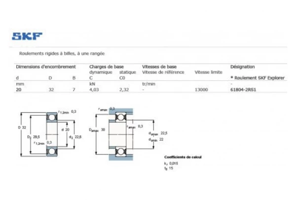 Roulement à billes SKF explorer 61804-2RS1 / 6804-2RS1 vendu à l’unité. Dimensions : 20 x 32 x 7 mm PPGC : 18.00 euros ttc Les références 61804-2RS1 et 6804-2RS1 désignent le même roulement. L’appelation actuelle est 61804-2RS1 et remplace l’ancienne référence 6804-2RS1 (norme).