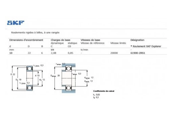 Roulement à billes SKF explorer 61900-2RS1 / 6900-2RS1 vendu à l’unité.Dimensions : 10 x 22 x 6 mmLes références 61900-2RS1 et 6900-2RS1 désignent le même roulement.L’appelation actuelle est 61900-2RS1 et remplace l’ancienne référence 6900-2RS1 (norme).